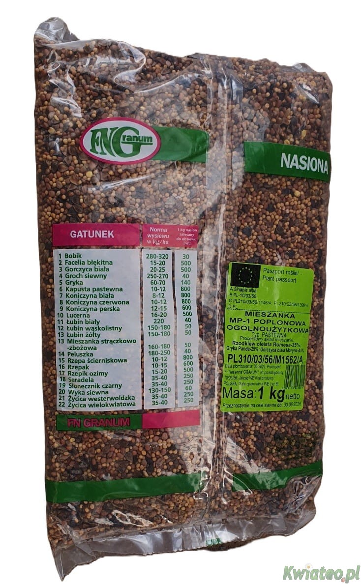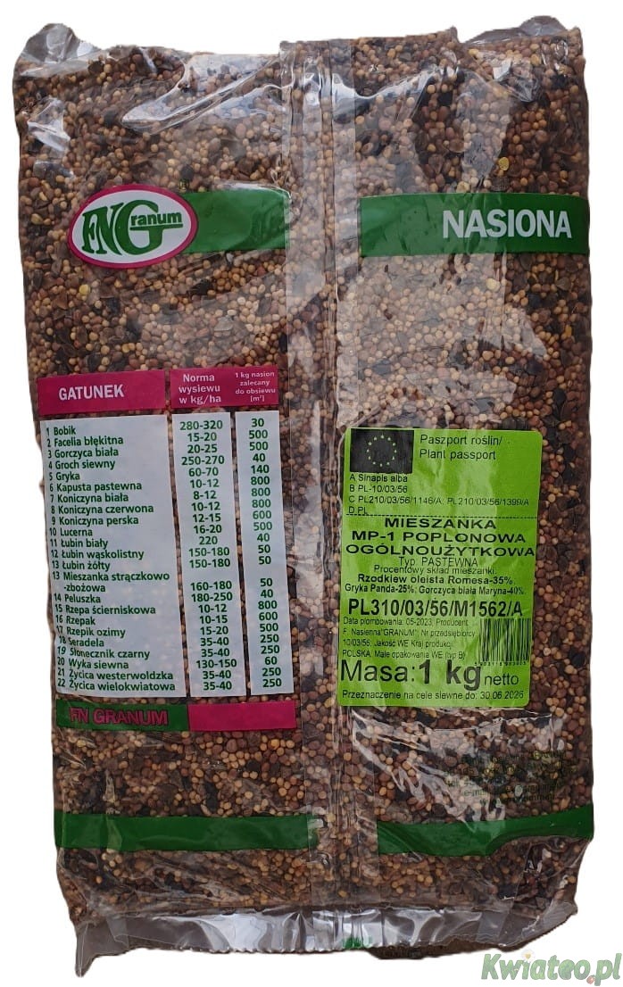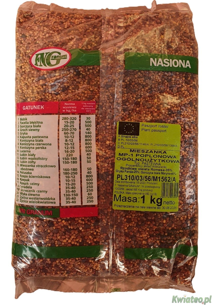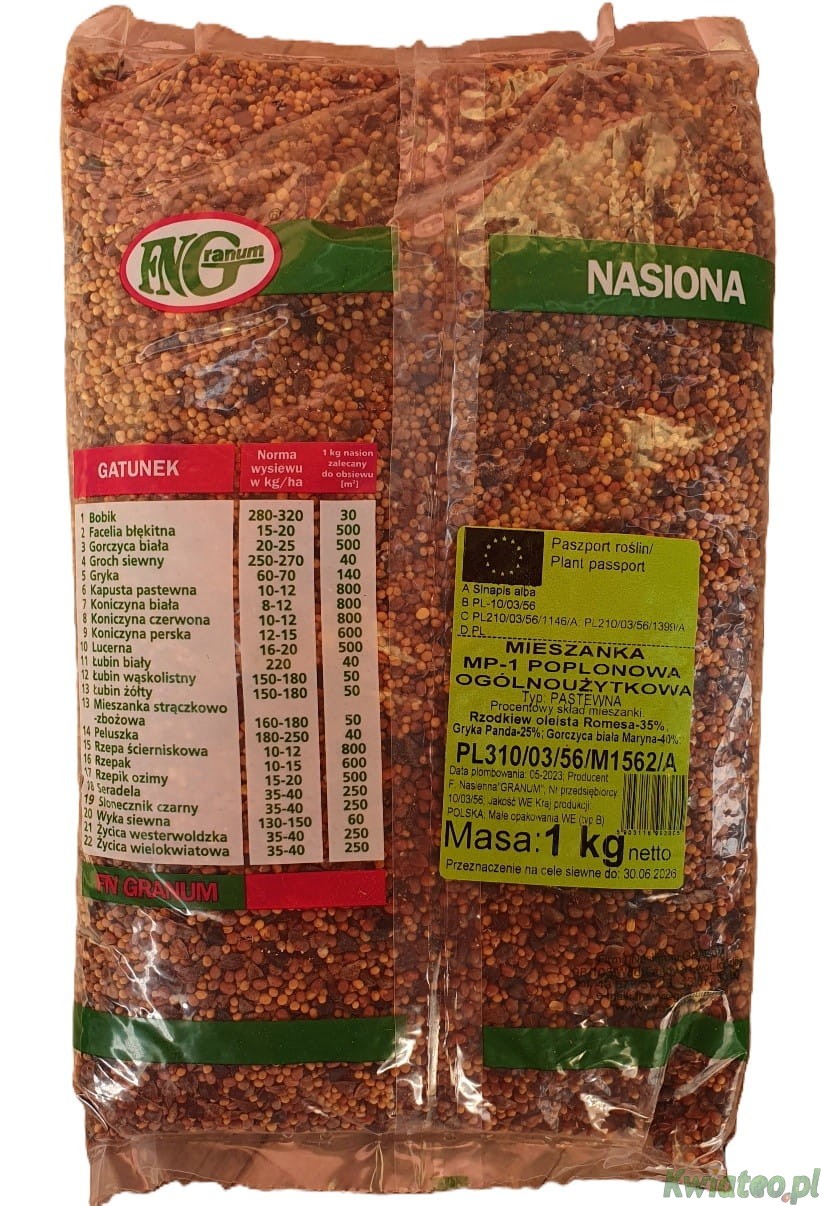 Granum MIESZANKA MP-1 OGÓLNOUŻYTKOWA 1kg NASIONA poplonowa przedplonowa poplon przedplon UNIWERSALNA gorczyca rzodkiew gryka