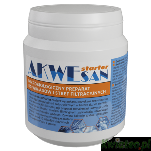 AKWESAN STARTER firmy BIOBAKT - preparat zawierający wyszukane, pozyskane ze środowiska naturalnego szczepy bakterii autotroficznych w bardzo dużym stężeniu.