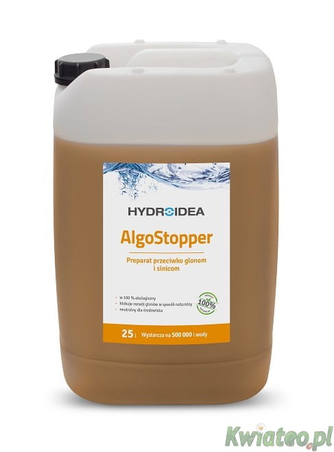 ALGO-STOPPER (AlgoStopper) - w 100% EKOLOGICZNY preparat nie dopuszczający do masowego rozwoju glonów zawiesinowych, glonów nitkowatych i sinic w oczku wodnym, stawie z rybami lub jeziorze;