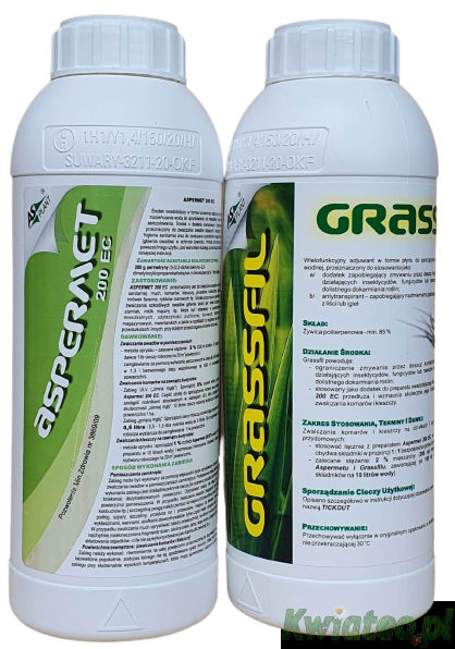 Aspermet 200EC 1L + Grassfil 1L utrwalacz = zestaw komplet koncentrat 2000m2 w koncentracie do rozcieńczenia oprysk przeciw kleszczom komarom w ogrodzie lub pomieszczeniu.