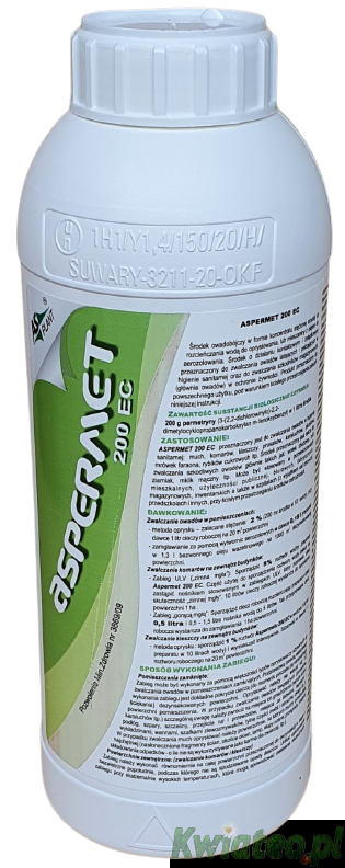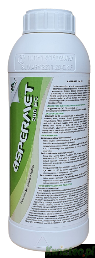 PREPARAT to ASPERMET 200EC (R) - najmocniejszy zabójca owadów - profesjonalny oprysk kiler dostępny na rynku przeciw owadom latającym komarom, komarom tygrysim, muchom, kleszczom, meszkom, oraz innym owadom biegającym i pełzającym pluskwom, karaluchom, rybikom, mrówkom w formie bardzo stężonego koncentratu do rozrabiania z wodą, przeznaczony m.in. do oprysku za pomocą typowych opryskiwaczy ręcznych pompowanych lub spalinowych, stosowany w OGRODACH i w BUDYNKACH.