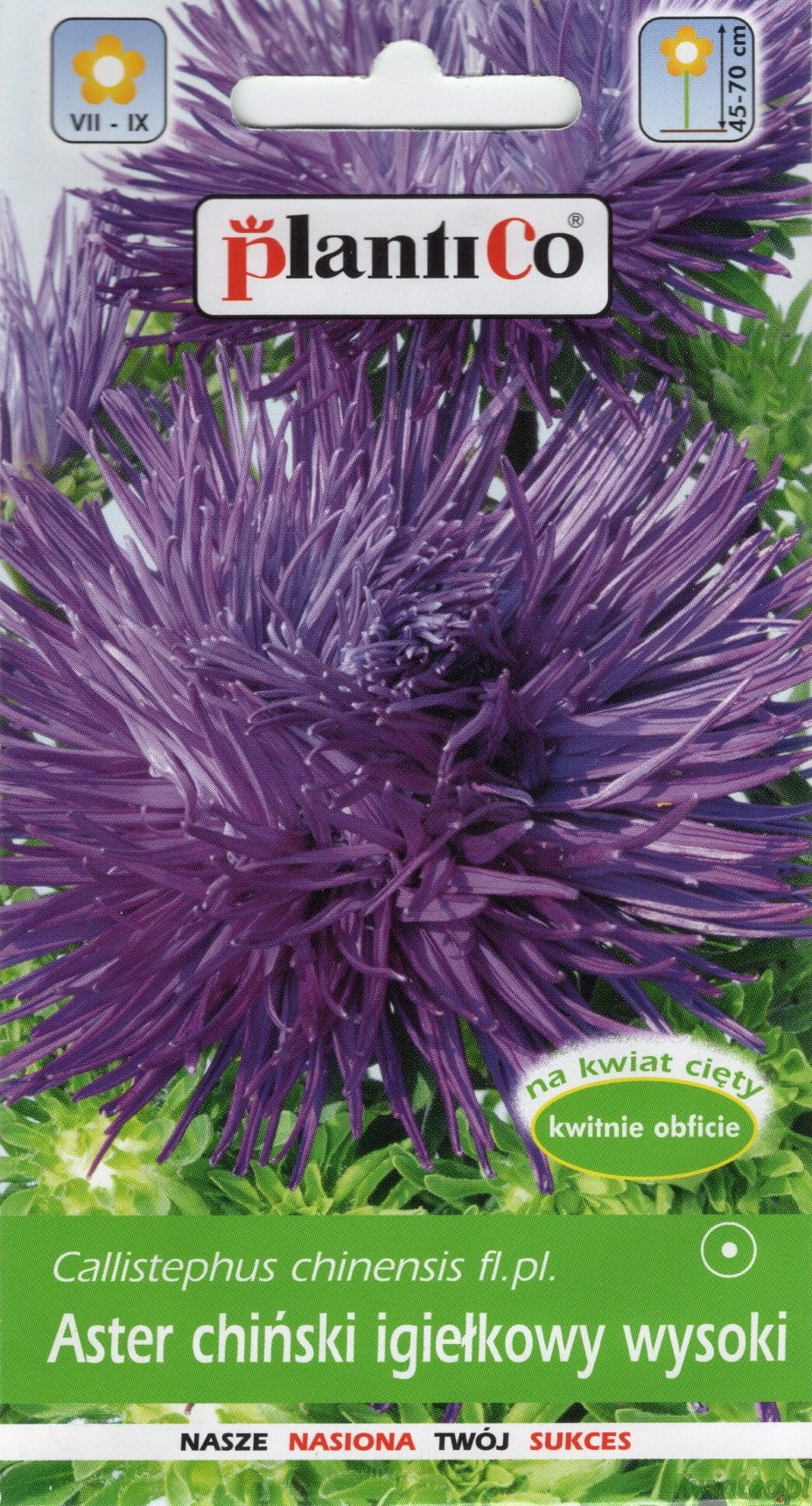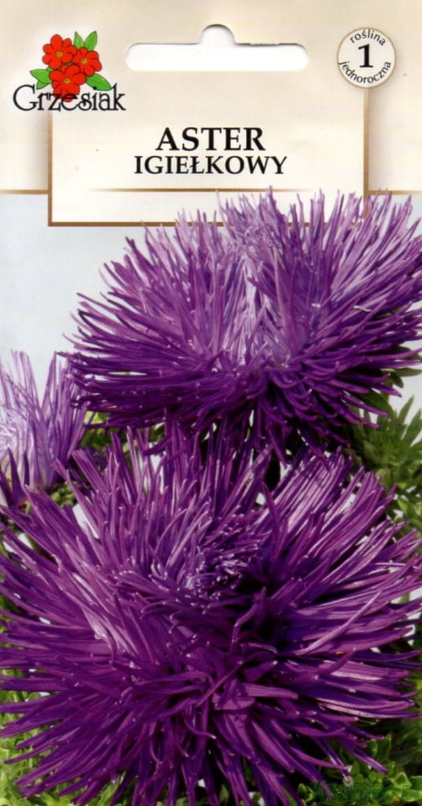 ASTER IGIEŁKOWY fioletowy lub niebieskofioletowy - to roślina jednoroczna, obficie kwitnąca późnym latem do VII do końca IX. Wysokość roślin 50-80cm.