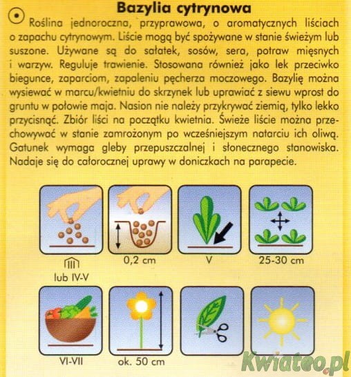 BAZYLIA CYTRYNOWA zielona (Ocimum basilicum) - opis roślin: roślina jednoroczna, ważne przyprawowe zioło o miłym zapachu. Nasiona ziół.