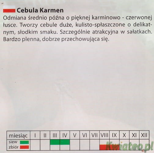 CEBULA 'Karmen' / 'Scarlet' czerwona nasiona do wysiewu