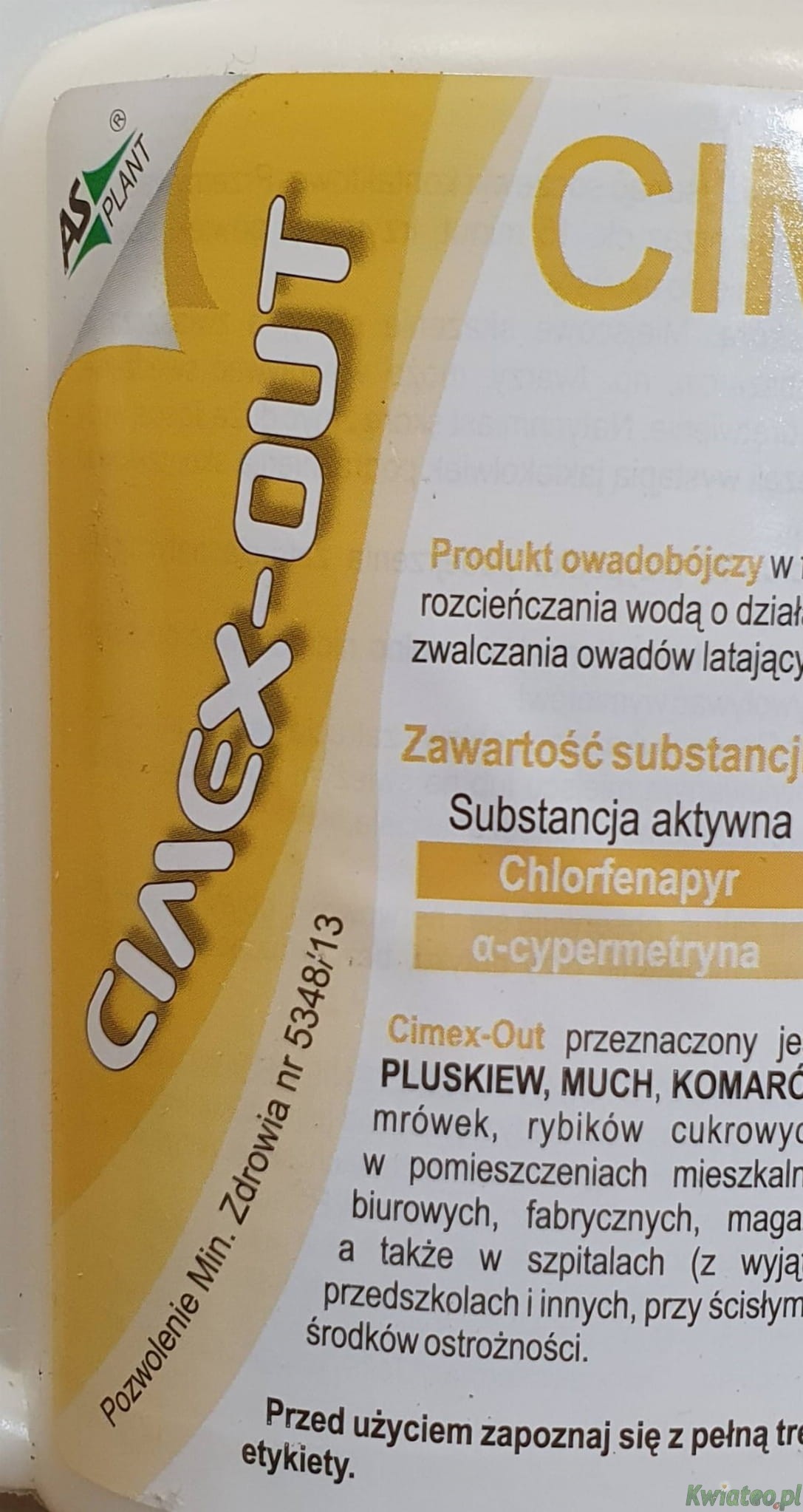 CIMEX-OUT 500ml KONCENTRAT OPRYSK AsPlant na muchy pluskwy komary kleszcze osy szerszenie prusaki karaluchy owady latające kąsające gryzące biegające skaczące