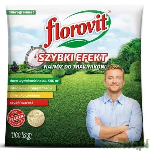 Florovit nawóz TRAWNIK SZYBKI EFEKT - bardzo wydajny nawóz startowy, nawóz wiosenny wpływający bardzo dobrze na wzrost i rozwój trawy, tak liści, jak i korzeni.