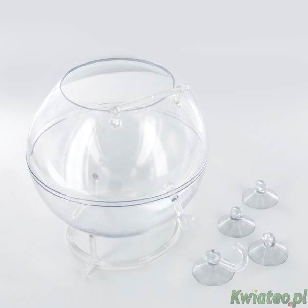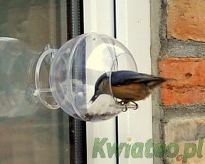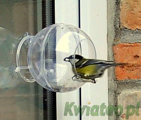 KARMNIK przeźroczysta otwarta kula przyczepiana na przyssawki do szyby / okna + mały kolorowy atlas ptaków.