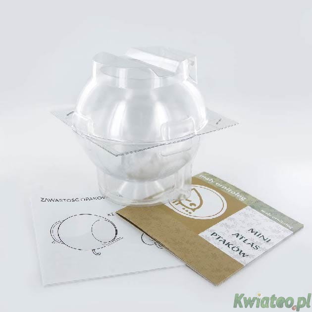 KARMNIK transparentny w kształcie kuli + mini atlas ptaków - zestaw Mały Ornitolog - komplet.