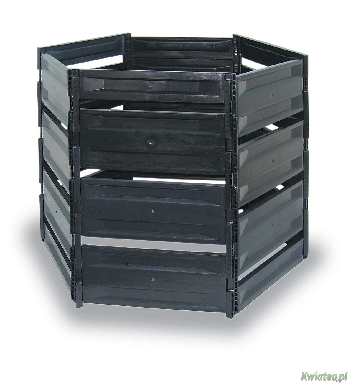 Największy otwarty plastikowy kompostownik na polskim rynku. Ławtość rozebrania powoduje, że wyjmowanie kompostu nie jest trudne. Gruby mocny plastik sprawia, iż służy w ogrodzie wiele lat, a kolor czarny sprawia iż pojemnik jest mało widoczny na tle otaczającej zieleni. Kompostownik Mrozoodporny!!!