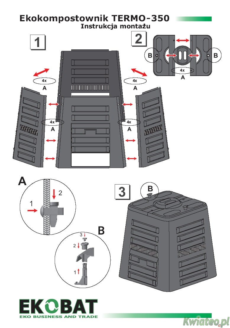 Ten kompostownik to połączenie odpowiedniej wielkości oraz dobrej ceny. Pojemność jest wystarczająca dla umiarkowanej ilości bioodpadów. Czarny kolor i niewielka wysokość ułatwia powodują, że Ekokompostownik TERMO-350 dobrze harmonizuje się z otoczeniem.