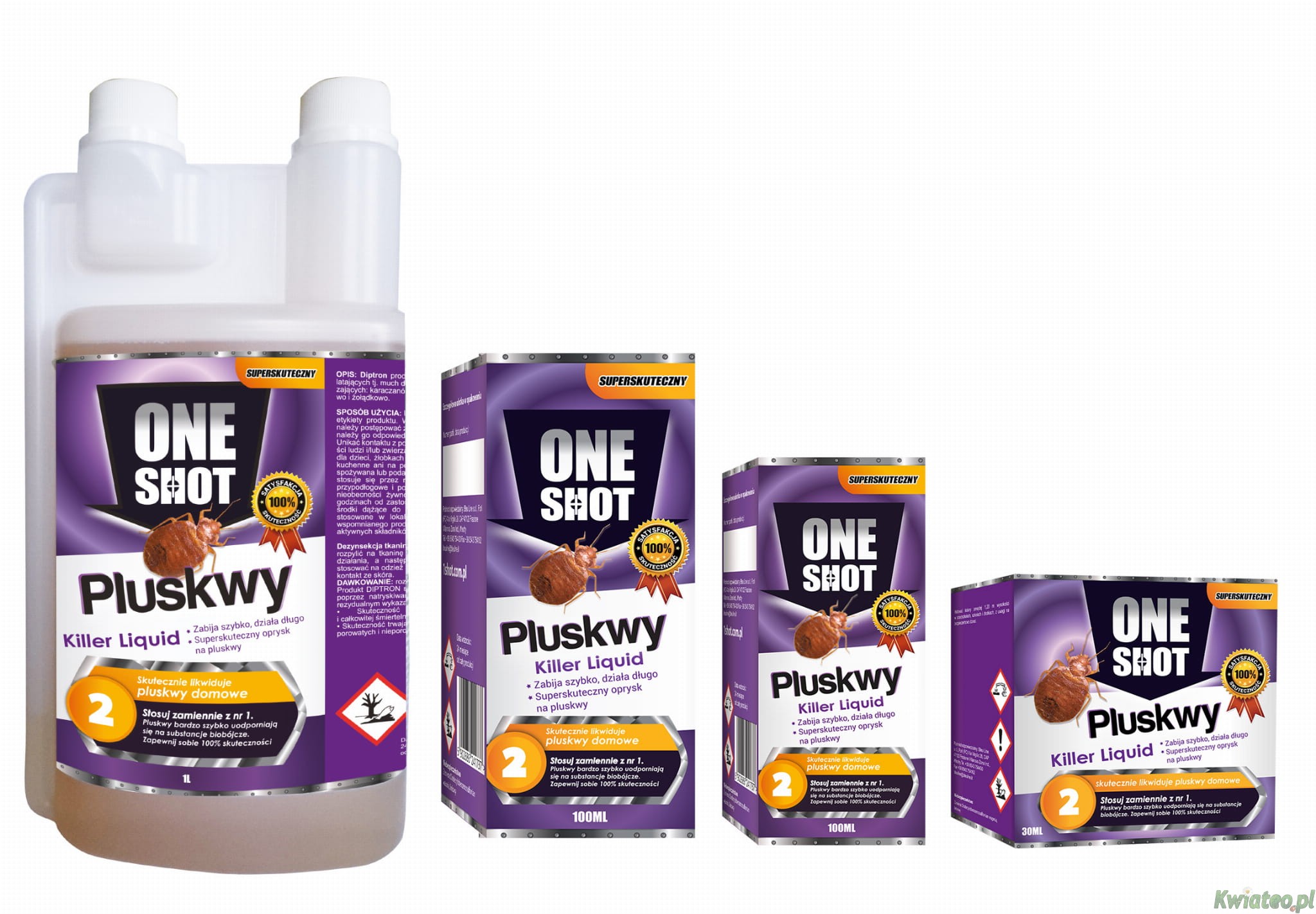 ONE SHOT na PLUSKWY 2 - 250ml koncentrat 0,25L na 18 Litrów wody - oprysk na pluskwy, pchły, karaczany, pająki