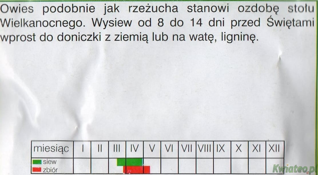 Owies wielkanocny - Avena Sativa - nasiona - Na Wielkanoc