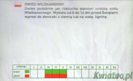 Wysiew nasion owsa - od 8 do 14 dni przed Świętami Wielkiejnocy wprost do doniczki z ziemią, watę lub ligninę.