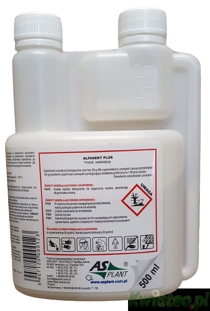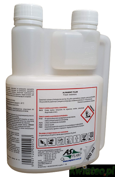 ALFASEKT PLUS 500ml AsPlant koncentrat zwalcza muchy komary pluskwy prusaki karaluchy mrówki faraona i inne owady wewnątrz budynków w pomieszczeniach