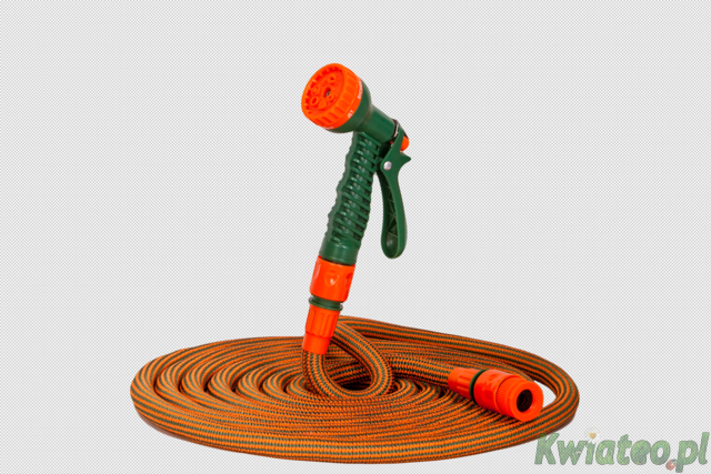 RAMP WĄŻ WOX-40 ogrodowy 10-40m ROZCIĄGLIWY +PISTOLET 7-funkcyjny zraszający na szybkozłączki +PRZYŁĄCZE na kran 3/4 i 1/2