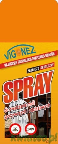 Vigonez - spray do zwalczania moli spożywczych i odzieżowych. Preparat posiada natychmiastowy i długotrwały efekt rezydualny, działając na dorosłe owady oraz ich larwy powodując całkowite wyniszczenie.