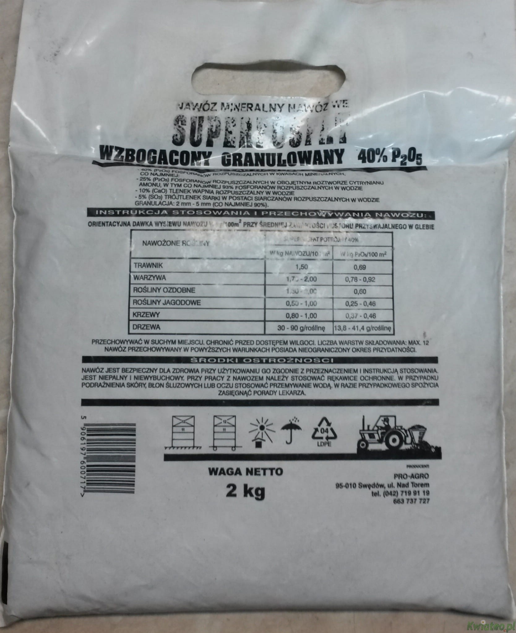 SUPERFOSFAT WZBOGACONY 2kg NAWóZ FOSFOROWY mineralny ogrodniczy 40% P2O5 (+10% CaO +5% SO3)