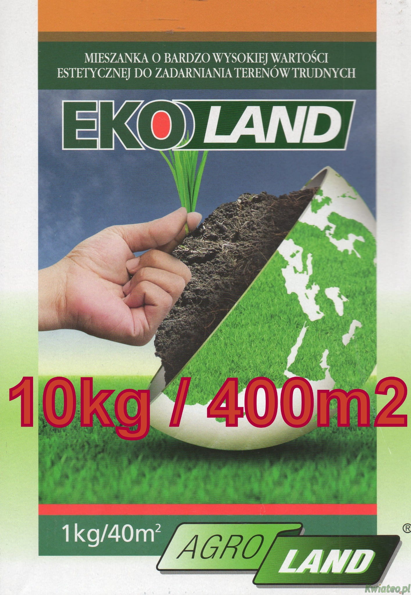 Oferowane opakowanie 10kg na 400m2 nasiona trawy DEKOR-LAND.