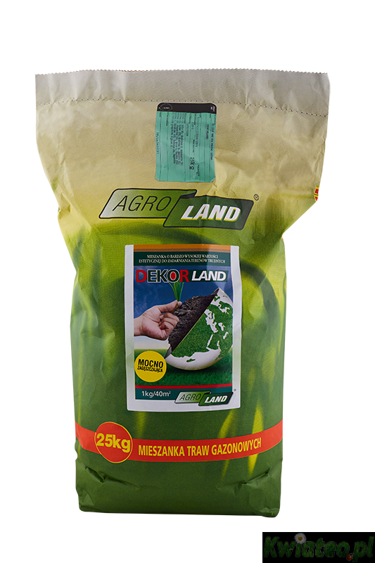 Trawa DEKOR LAND 25kg - nasiona trawy trawnikowej DEKORLand to DEKORACYJNA i jednocześnie ODPORNA TRAWA na czasowe przesychanie trawnika (dawna nazwa EkoLand) firmy Agro-Land.