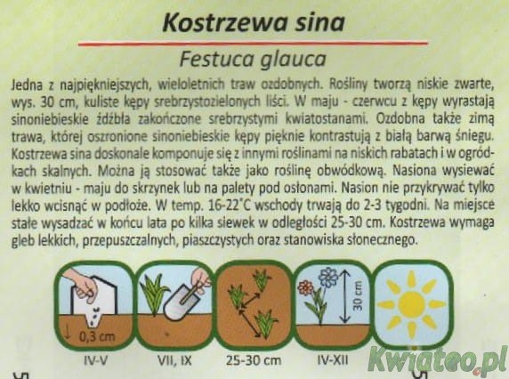 TRAWA OZDOBNA KOSTRZEWA SINA (niebieska stalowa) (Festuca glauca) nasiona -około 100szt.