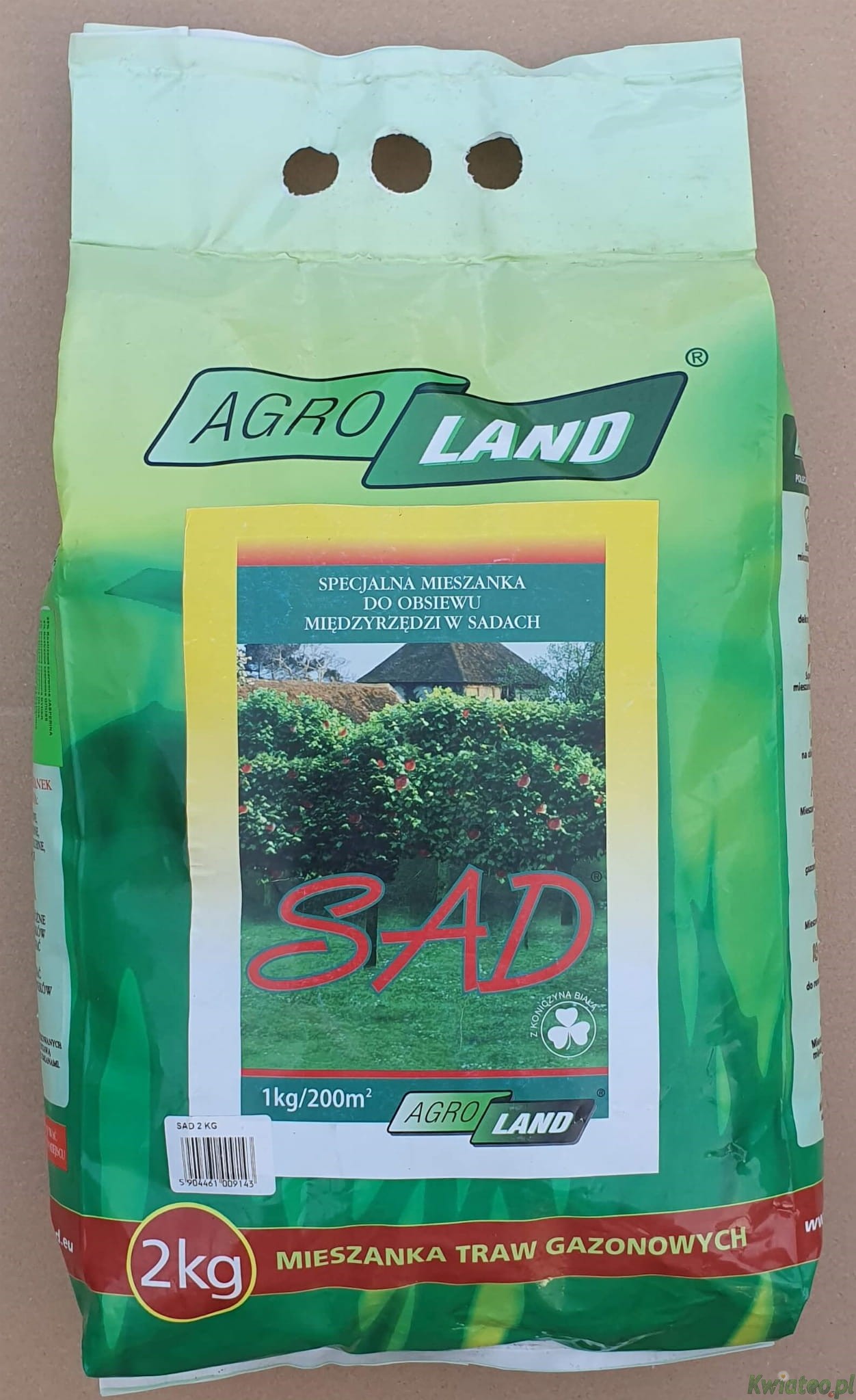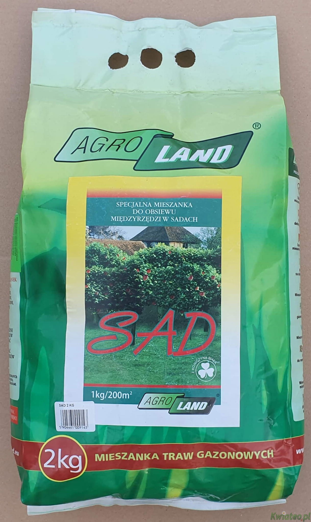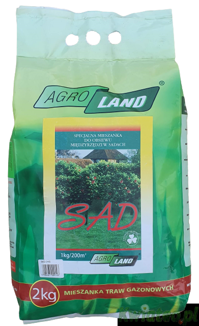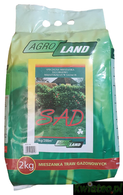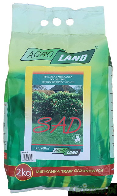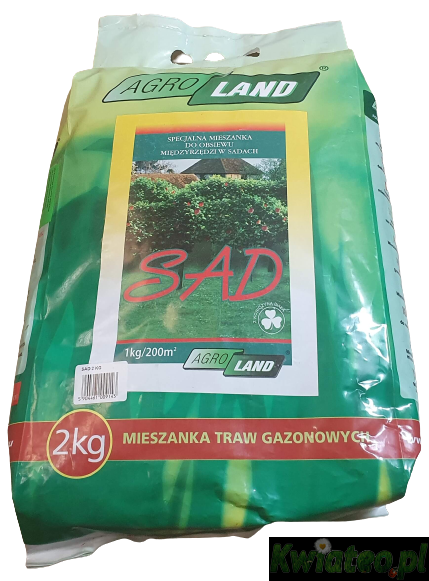Mieszanka nasion "SAD" AgroLand - mieszanka nasion trawy trawnikowej i drobnolistnej koniczyny białej.